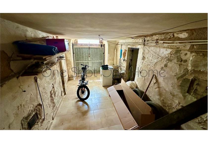 Da una via retrostante, un accesso discreto conduce a un garage privato e a un autentico dammuso in pietra, perfettamente collegati all’abitazione — un dettaglio raro nel centro storico, che arricchisce la proprietà di funzionalità e fascino.