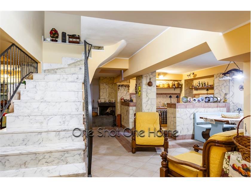 L’indipendente è stato costruito negli anni 90, con tutti i criteri antisismici. Immobile ha una superficie di 480 mq ca. e si suddivide in cinque piani, piano scantinato, piano terra, primo piano, secondo piano e piano mansarda con terrazzino. Tutto l’indipendente è stato progettato con cura e con tutti i confort con materiali di pregio, curato nei mini dettagli. Al piano scantinato troviamo una zona living, cucina, bagno, dove poter trascorrere dei momenti tranquilli con i propri cari, un locale tecnico dove sono ubicate due cisterne da 1000 litri l’una con una pompa di rilancio di grande portata con un addolcitore che utilizza il sale marino. Al piano terra abbiamo l’ingresso principale con portone in legno massello molto elegante e bello da vedere con rifiniture in acciaio, entrando troviamo un ingresso con un piccolo studiolo di rappresentanza. Una stanza è stata adibita a sala relax dove c’è un bagno e una carambola a sei buche all’insegna del divertimento. Una scala fatta a mano in ferro battuto e marmo ci porta al primo piano dove troviamo il salone, la sala da pranzo, una cucina non molto grande e un bagno e una lavanderia. Salendo ancora le scale troviamo la zona notte dove sono ubicate tre camere da letto di cui la camera patronale e due camere da letto ampie di cui una anche con soppalco. Una zona armadi con stireria, a concludere nella zona notte abbiamo due bagni uno più piccolo l’altro più grande con la vasca e la doccia. All’ultimo piano troviamo un sotto tetto che conduce anche ad un terrazzo dove vi è il cuore di tutti gli impianti della casa di condizionamento e riscaldamento con un gruppo unico installato in terrazza con il sistema canalizzato. Una caldaia che viene utilizzata anche per il riscaldamento. Pannello solare per la produzione di acqua calda con serbatoio di accumulo di 400 litri.